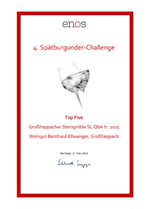 Unser Spätburgunder SL ist mit fünf Sternen punktgleich unter den Top Five bei der ENOS-Challenge Spätburgunder.