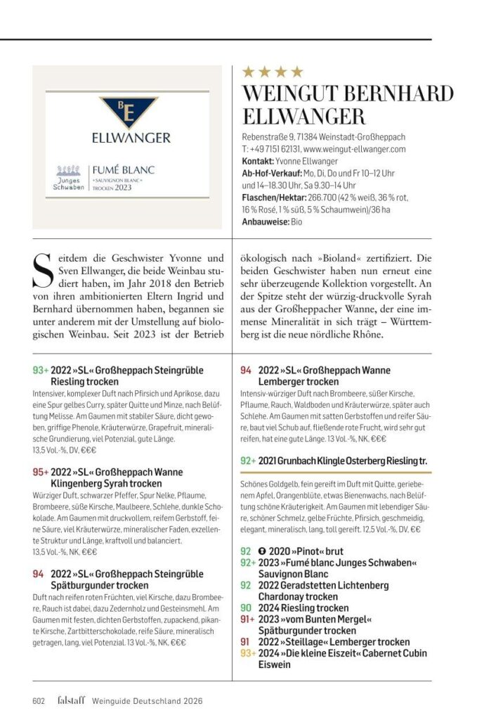Von Falstaff wurden wir mit 4 Sternen als ausgezeichnetes Weingut gekürt. Wir freuen uns über die Bewertung, die unsere Leidenschaft und Liebe zum Wein widerspiegelt.