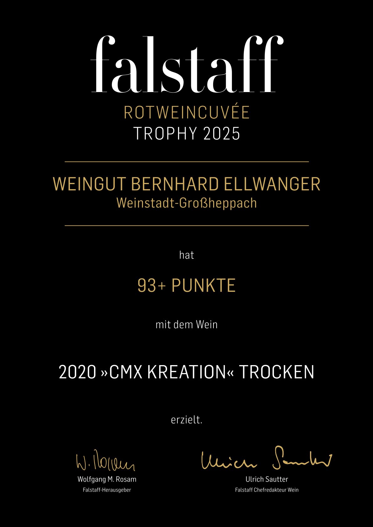„Konzentrierter und fein nuancierter Duft, Rauch, geräucherter Schinken, helle und dunkle Waldbeeren, Kirschen, Gewürznelke, Piment. Am Gaumen mit guter Energie und Substanz, lebendiger Säurefluss, feinkörniger Gerbstoff, frische Frucht, mineralisch-würzig, elegant mit gutem Extrakt und Länge.“ Zitat Falstaff