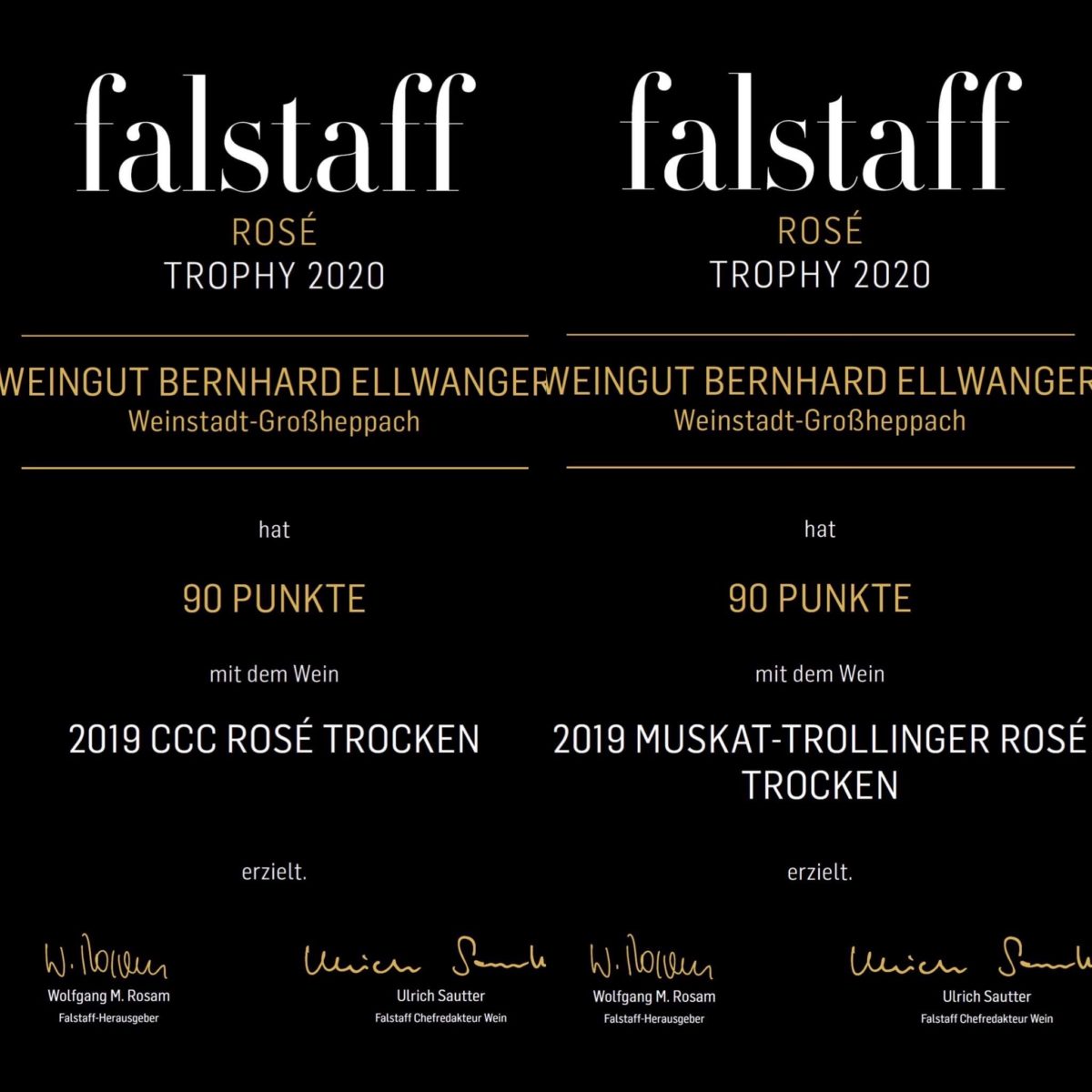 Super Erfolg für unseren 2019er CCC Rosé trocken und unseren 2019er Muskat-Trollinger Rosé trocken. Da kann der Sommer kommen!