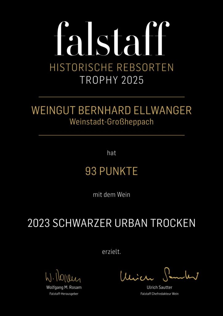 2023er Schwarzer Urban, trocken: „Kräuterwürzige Noten aber auch viel Frucht: Maraska-Kirsche, Brombeere. Der Gaumen setzt geschmeidig an, entfalten dann eine zurückhaltende Menge reifen, eher weichen Tannins, ehe der Wein in einen recht körperreichen, fruchtgetragenen Abgang übergeht.“ Zitat Falstaff Redation