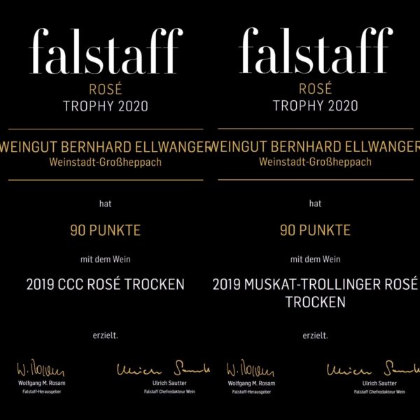 Super Erfolg für unseren 2019er CCC Rosé trocken und unseren 2019er Muskat-Trollinger Rosé trocken. Da kann der Sommer kommen!