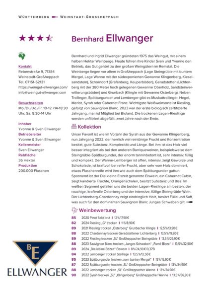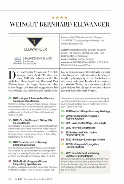 Wir freuen uns sehr über die tolle Bewertung 🙂 „An Sven Ellwanger aus dem Remstal kommt man nicht mehr vorbei, wenn man die württembergischen Spitzenwinzer in den Blick nimmt. Er präsentiert eine Weinreihe ohne Fehl und Tadel und beweist sein vielseitiges Können:…“