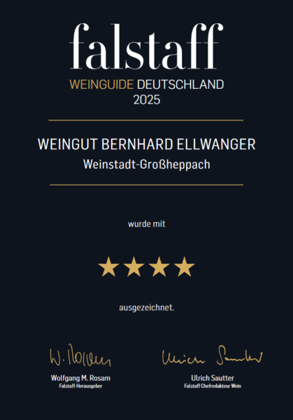 Falstaff 2025: Ein „ausgezeichnet“ für das Weingut Bernhard Ellwanger