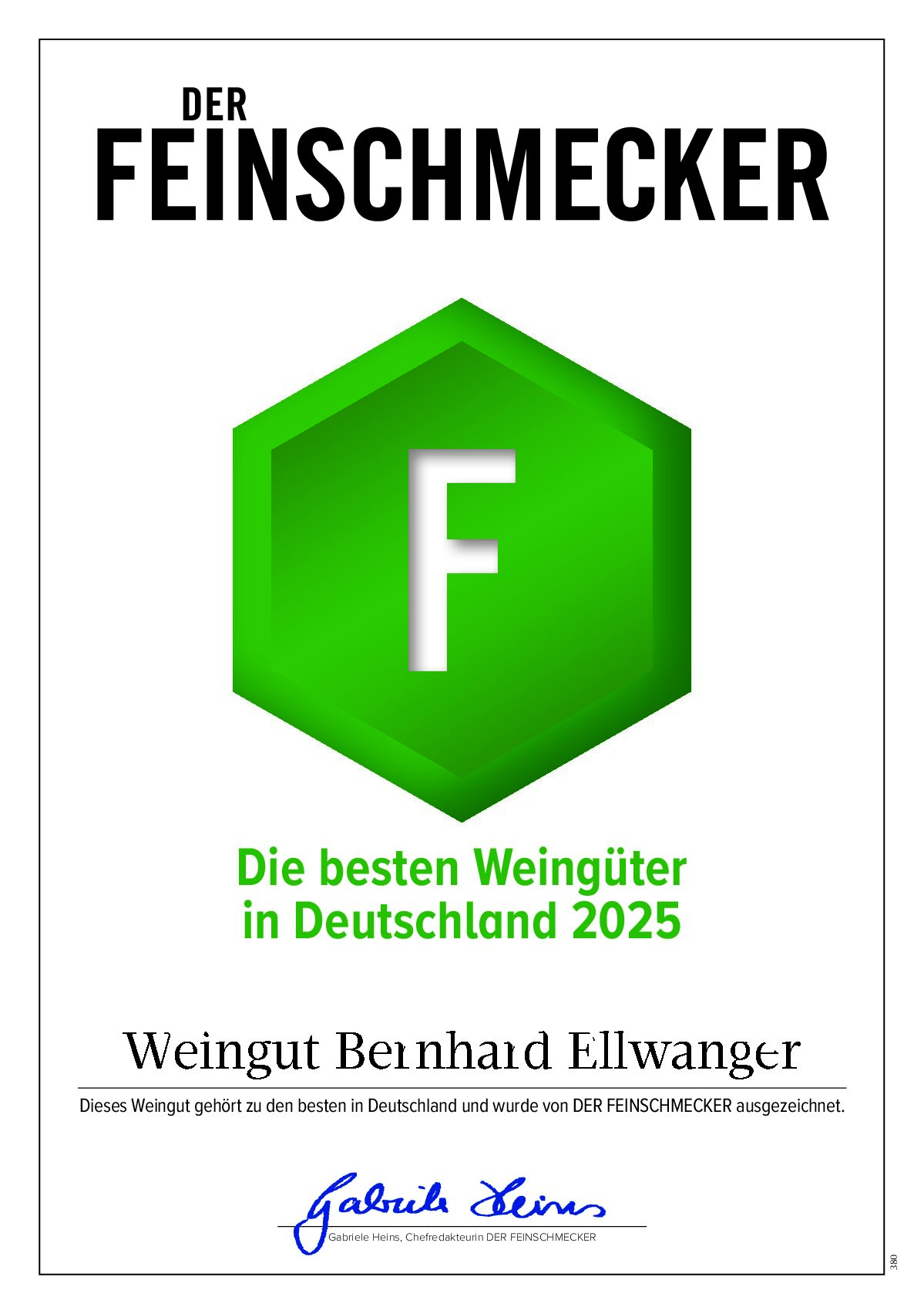 Der FEINSCHMECKER – kürt das Weingut Bernhard Ellwanger zu den besten in Deutschland