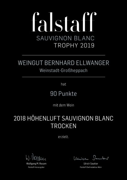 Wir freuen uns über den Erfolg unserer beiden Sauvignon blancs bei der Falstaff Sauvignon blanc Trophy 2019. Unser Sauvignon blanc „Junges Schwaben“ erzielte den 3. Platz mit 92+ Punkten, unser Sauvigon blanc *Höhenluft* ebenfalls eine tolle Bewertung mit 90 Punkten! https://ellwanger-bio.com/produkt/2018ersauvignon-blanchoehenlufttrocken/