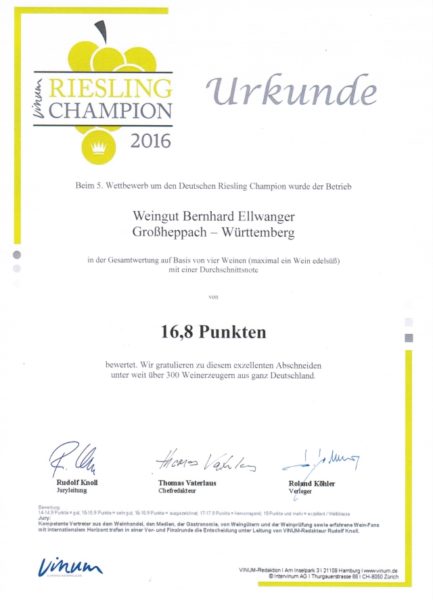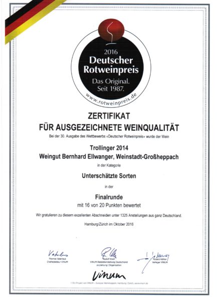Wir freuen uns riesig über den 2. Platz für unseren 2016er Muskat-Trollinger Rosé Eiswein in der Kategorie Edelsüß beim diesjährigen Vinum Deutschen Rotweinpreis Mehr als 1850 Rotweine wurden von der kompetenten Fachjury aus Sommeliers, Önologen, Winzern, Weinhändlern und Fachjournalisten verkostet. Die Sieger sowie die Zweit- und Drittplatzierten der acht Kategorien wurden im Rahmen der festlichen … Weiterlesen