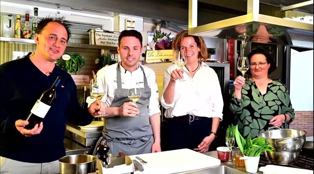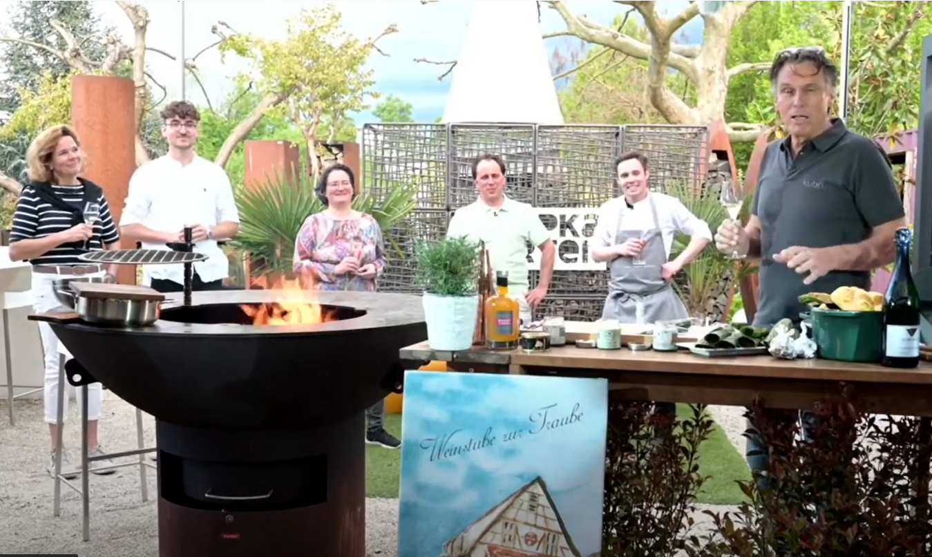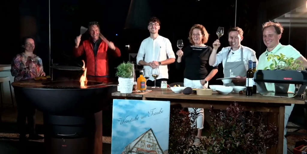 Küchenmeister Matthias Walter von der Weinstube Traube in Grunbach bereitete eine kulinarische Weltreise in drei Gängen zu. Sven Ellwanger stellt dazu die passende Weinbegleitung vor. Für die richtige Atmosphäre wurde dieses Mal live aus Kupka Garten gestreamt.