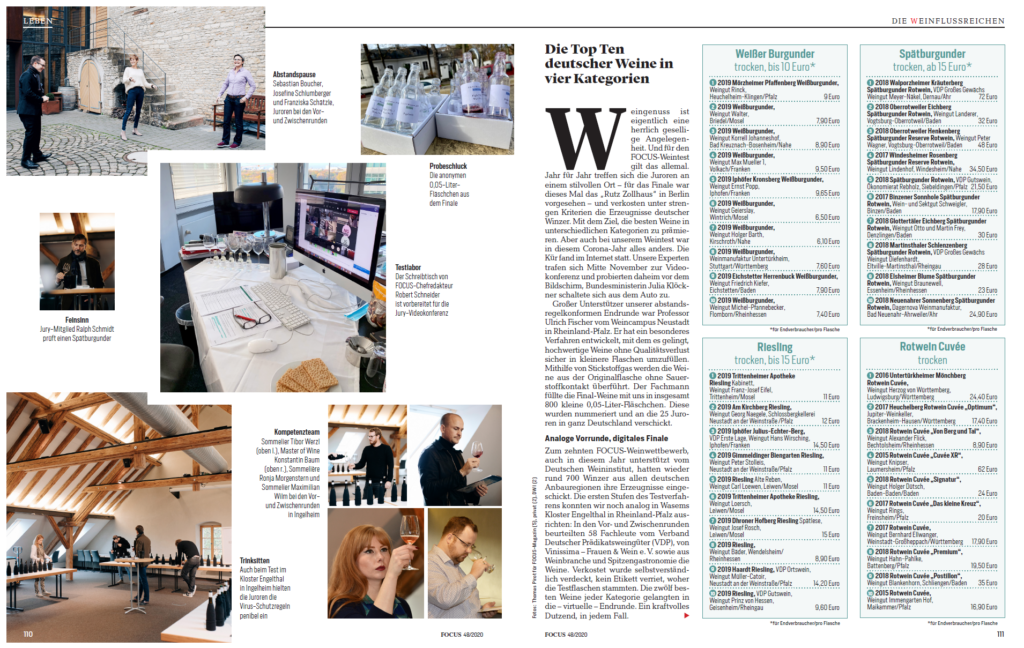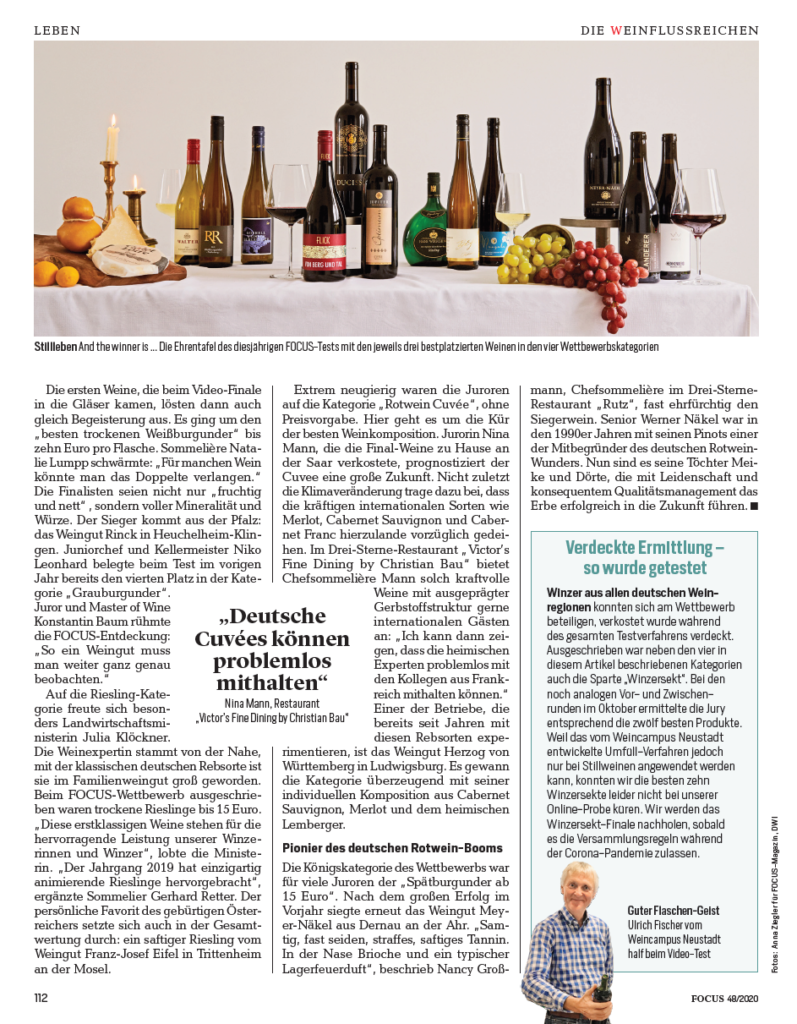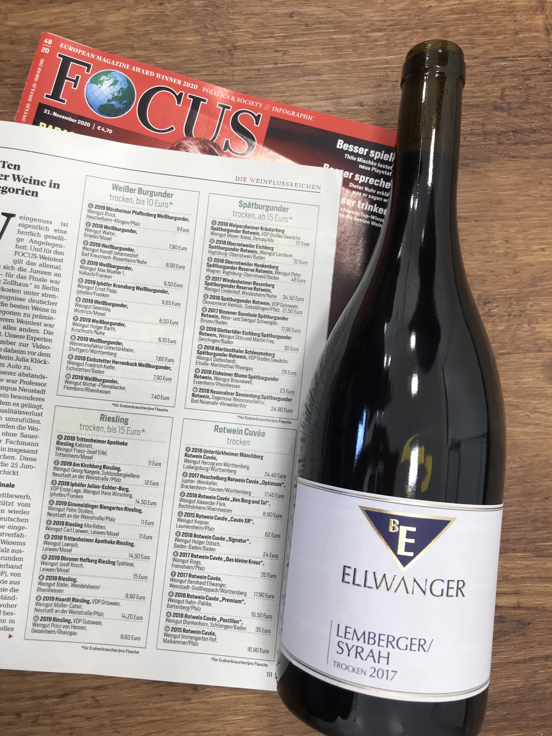 Geplaatst in: Rückblick door Yvonne Ellwanger op 21. Dezember 2020 Top Ten beim Focus Weintest Unser 2017er Lemberger/Syrah trocken kam in der Kategorie Rowein-Cuvées auf den 7. Platz!